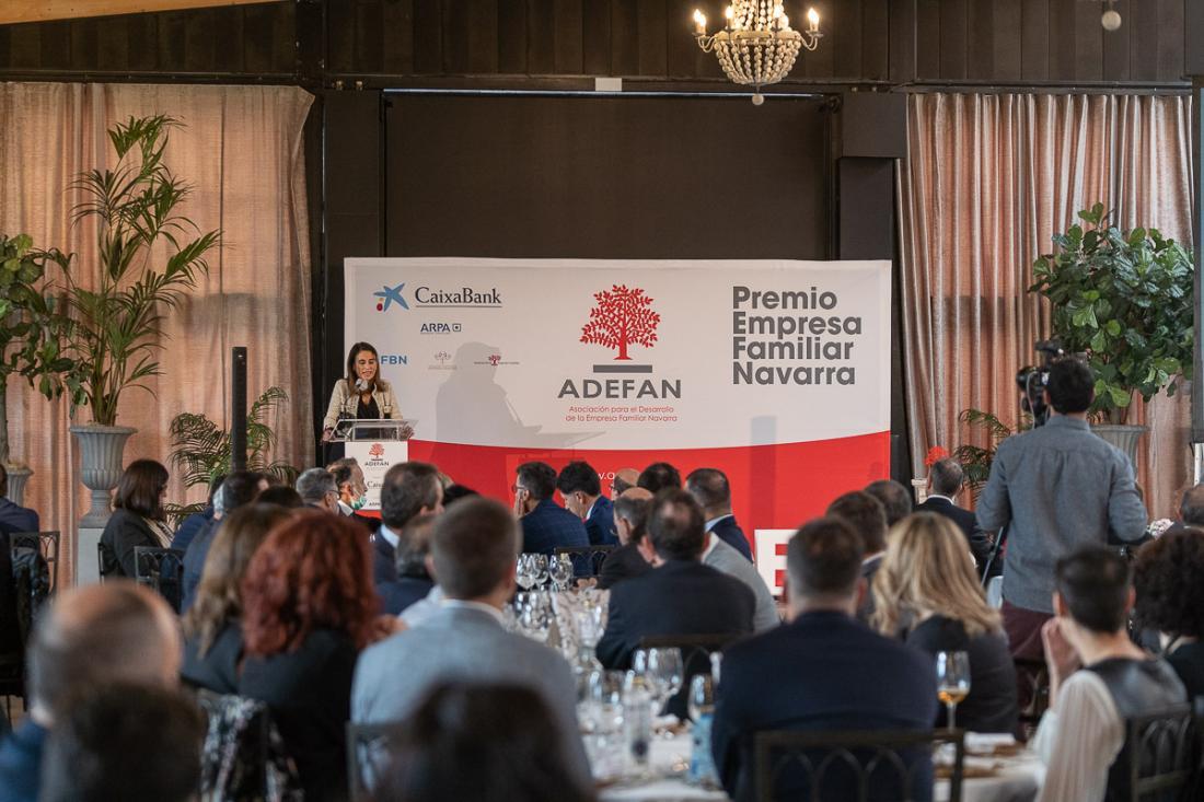 Previamente, la directora territorial Ebro (Navarra, La Rioja y Aragón) de CaixaBank, Isabel Moreno, enumeró algunos de los compromisos que mantiene su entidad en apoyo de las familias empresarias. “Las empresas familiares sois un pilar fundamental, sin duda, en el desarrollo económico y social de Navarra”, ensalzó dirigiéndose a los galardonados con el V Premio Empresa Familiar Navarra. Y agregó que en CaixaBank se sienten “muy orgullosos” de colaborar con una asociación empresarial como ADEFAN.