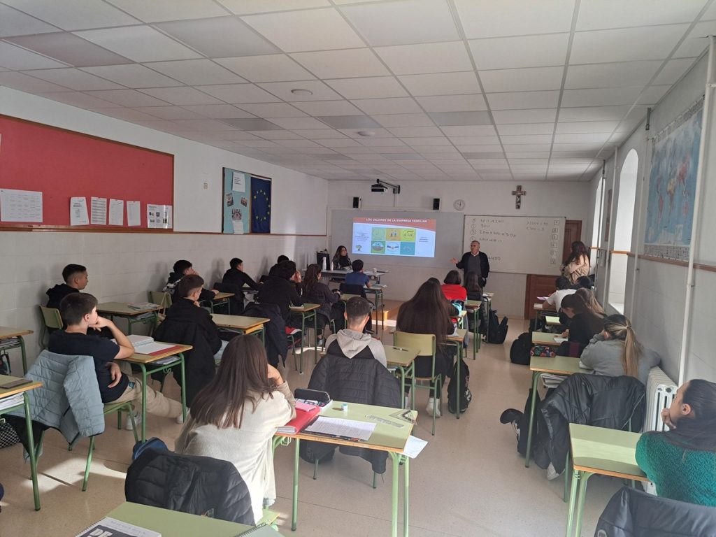 En concreto, la acción consistió en una sesión impartida por Francisco Esparza, director general de Unsain Grupo, a la que asistieron 26 alumnos: 15 alumnos de 4º ESO y 11 de 2º Bachillerato. En dicho encuentro, el ponente invitado compartió su experiencia al frente de una empresa familiar centenaria, destacando los valores, retos y oportunidades que caracterizan este modelo de negocio.