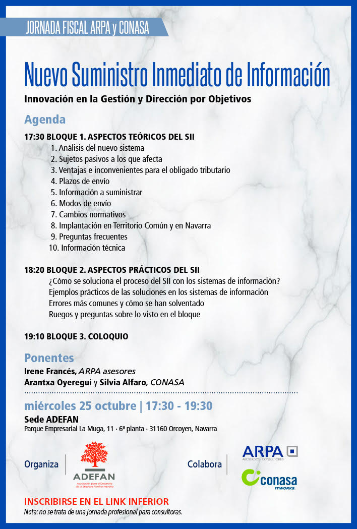 • Etiquetas del Evento:adefan, arpa abogados consultores, fiscalidad, Sistema Inmediato de Información