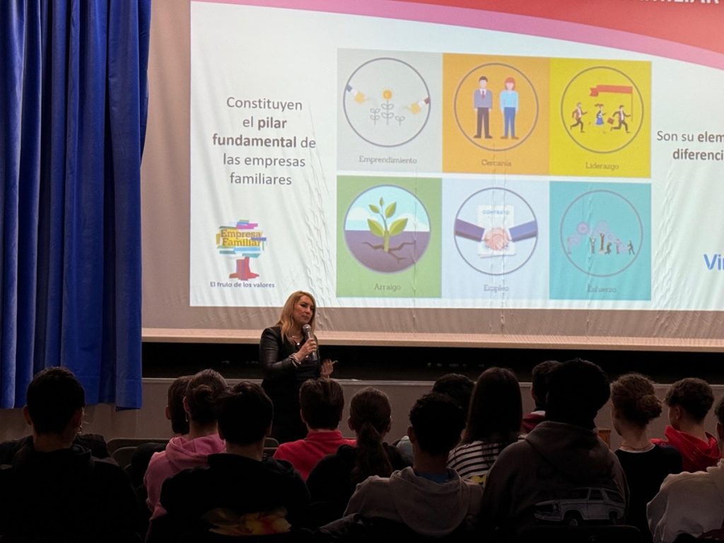 El IESO Reyno de Navarra de Azagra acogió el 18 de marzo una charla impartida por Marta Virto, adjunta a la Dirección General de Grupo Virto, en la que 27 alumnos de 4º de ESO pudieron conocer de primera mano la trayectoria y valores de esta empresa familiar navarra, líder dentro del sector agroalimentario. La actividad se enmarca en la VI edición del programa «La Empresa Familiar en las Aulas», impulsado por ADEFAN y patrocinado por CaixaBank.
