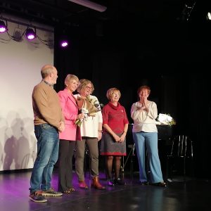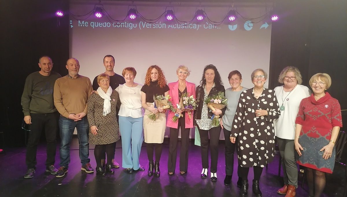 Silvia Ezquerra, en el medio de la imagen, durante el reconocimiento de la Asociación Mujeres Adrianesas y Viceversa. (Fotos y Vídeos compartidos por la Revista Escaparate).