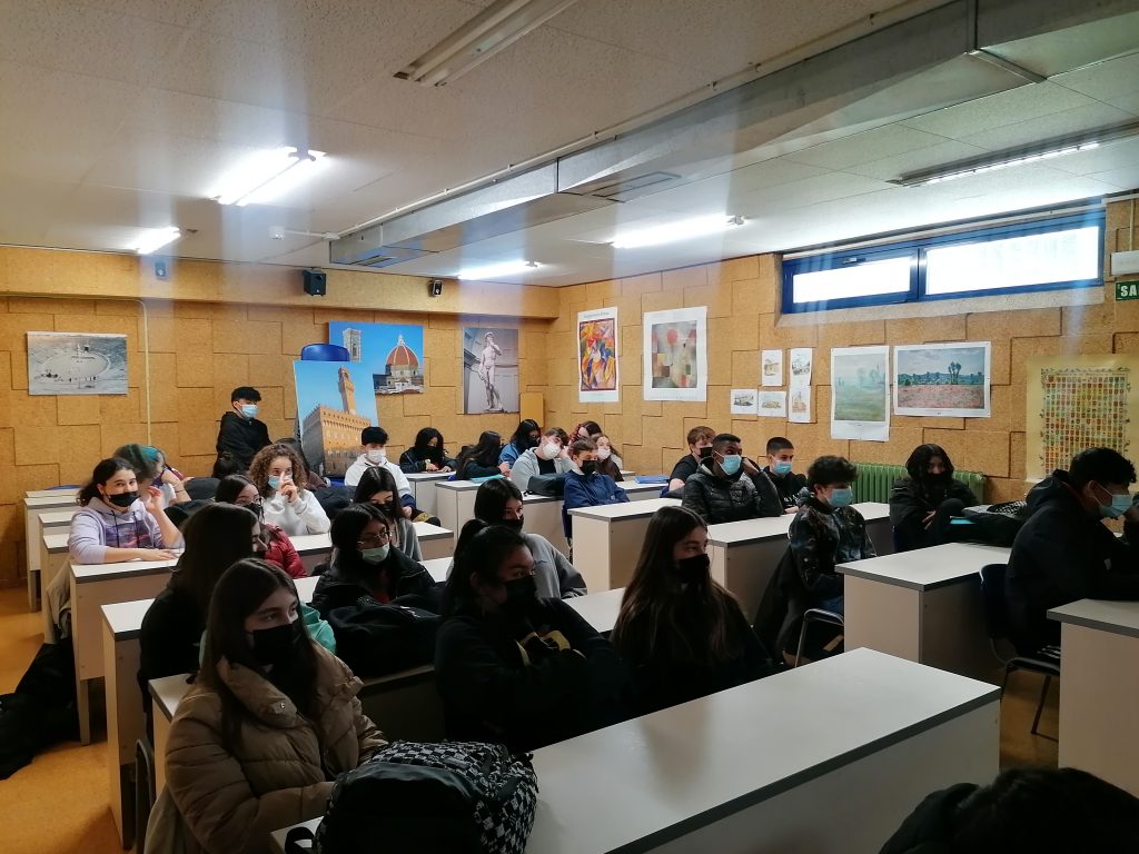 Un total de 40 alumnos de 3º de ESO del IES Navarro Villoslada participaron de la charla ofrecida por Resitex el 5 de abril.