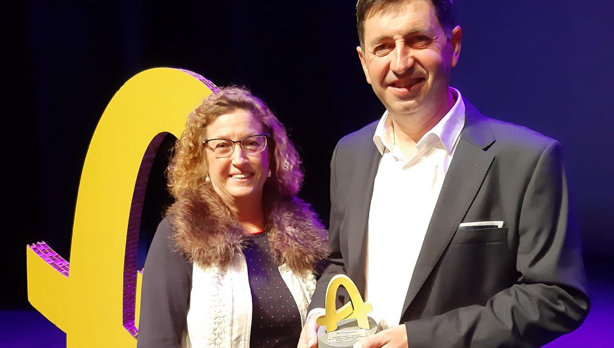 Marisa Sainz junto al presidente de Lacturale, Juanma Garro, premio Alimenta Navarra 2021 a la Trayectoria Profesional y Desarrollo Personal. (Foto: Víctor Ruiz).