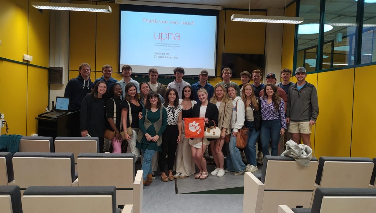Un grupo de 23 estudiantes de la Universidad de Clemson, Carolina del Sur, junto con dos profesores de la misma universidad, visitó el 11 de junio la Universidad Pública de Navarra (UPNA). La directora de la Cátedra de Empresa Familiar, Lucía Garcés, y la directora del Área de Emprendimiento, Paula Anzola, actuaron como anfitrionas y los acompañaron en esta visita educativa.
