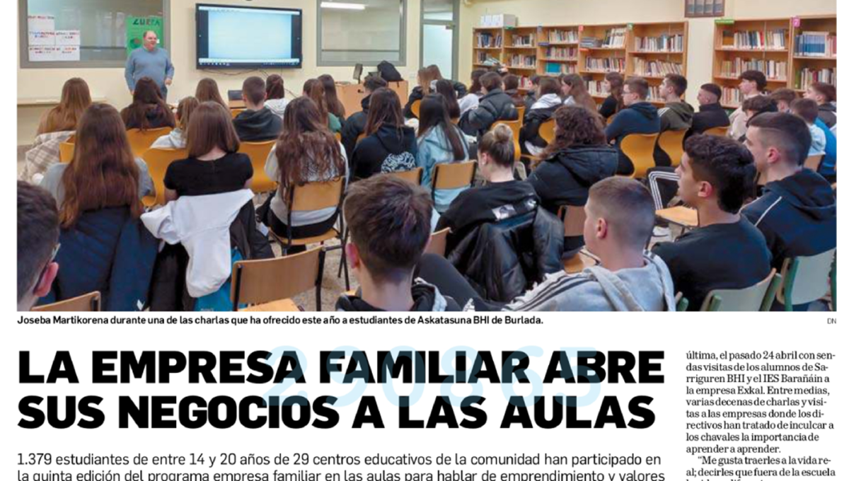 Diario de Navarra recogió en su reportaje importantes testimonios de empresas asociadas y centros educativos participantes en el programa 'La Empresa Familiar en las Aulas'