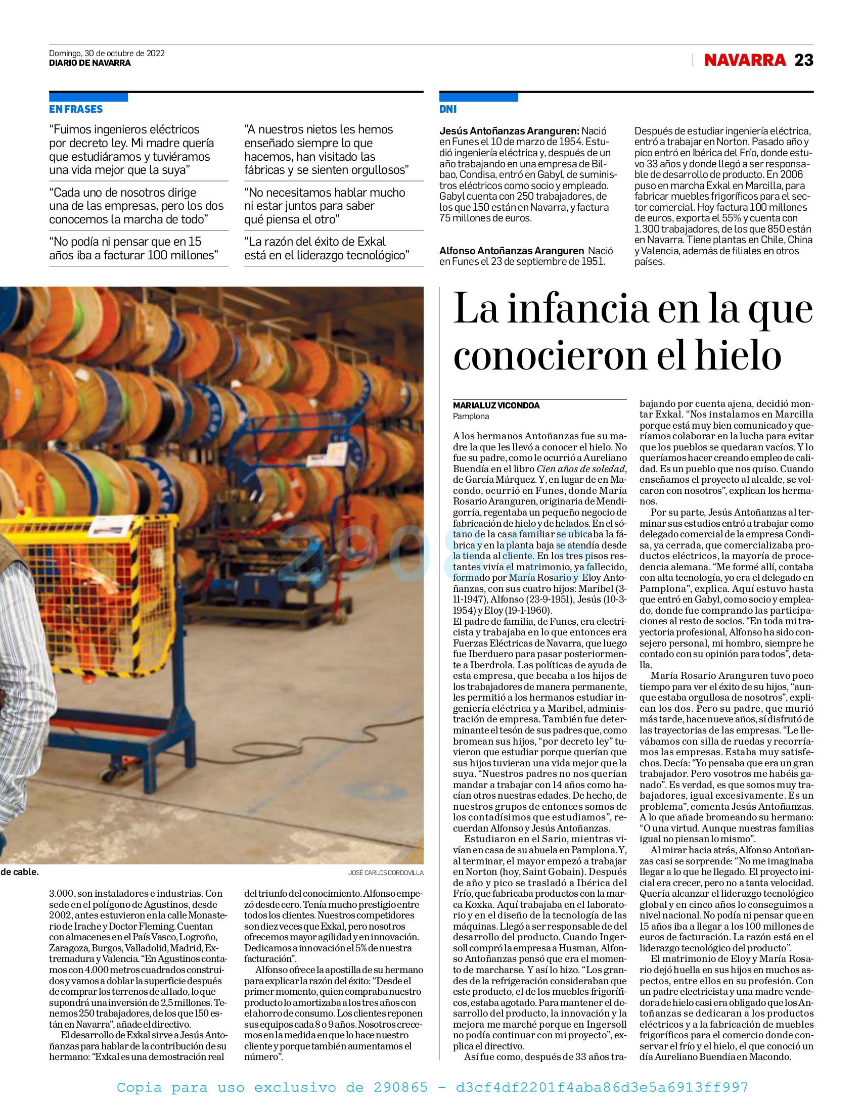 La primera generación de la familia Antoñanzas, formada por los hermanos Jesús y Alfonso, fueron entrevistados este 30 de octubre por Diario de Navarra con motivo de la concesión del VI Premio Empresa Familiar Navarra concedido por ADEFAN y que se les entregará el próximo 4 de noviembre.