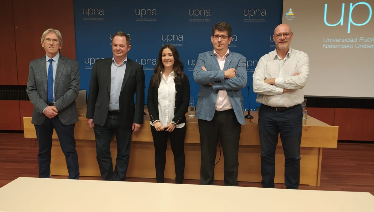 De izda. a dcha. José Luis Goñi (UPNA), Helmut Döllerer (Liebherr Industrias Metálicas), Lucía Garcés (UPNA), Daniel Antoñanzas (EXKAL) y Óscar Huarte (Lizarte).