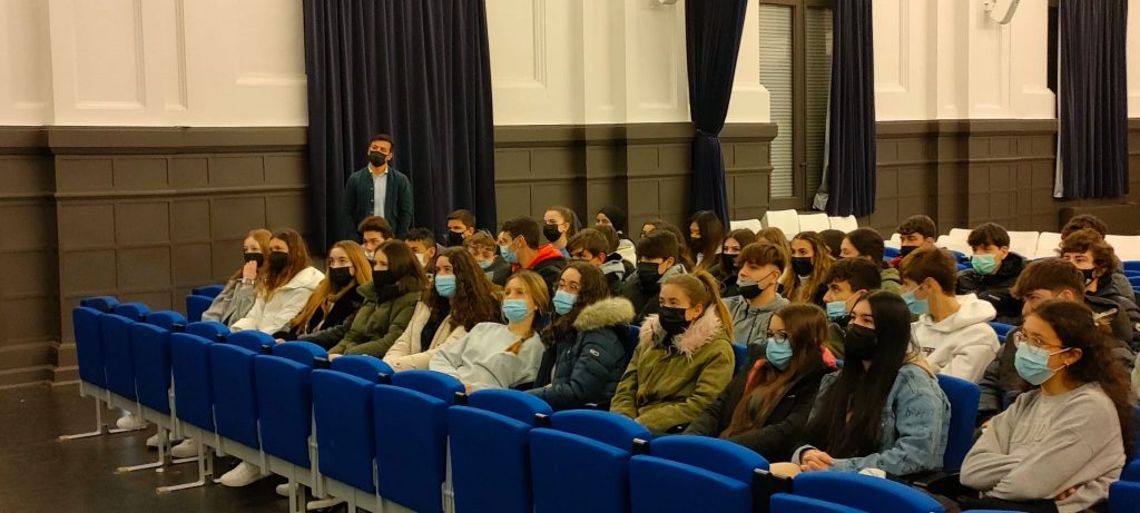 Un momento de la charla ofrecida por Grupo Enhol en el Colegio Jesuitas de Tudela.