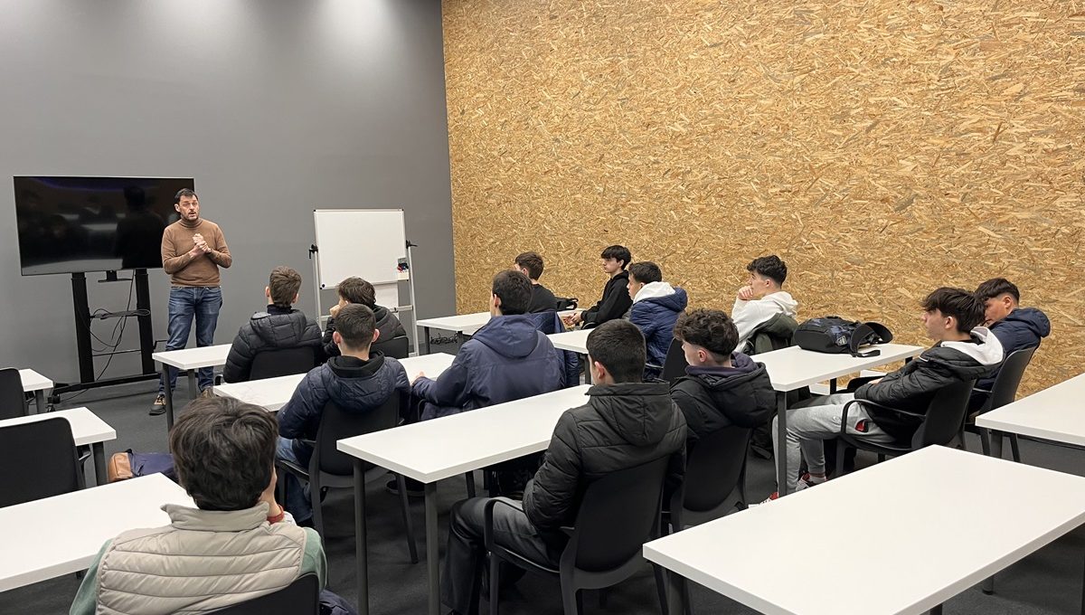 Los alumnos del Colegio Irabia atienden las explicaciones de los responsables de IED. (Fotos: cedidas).