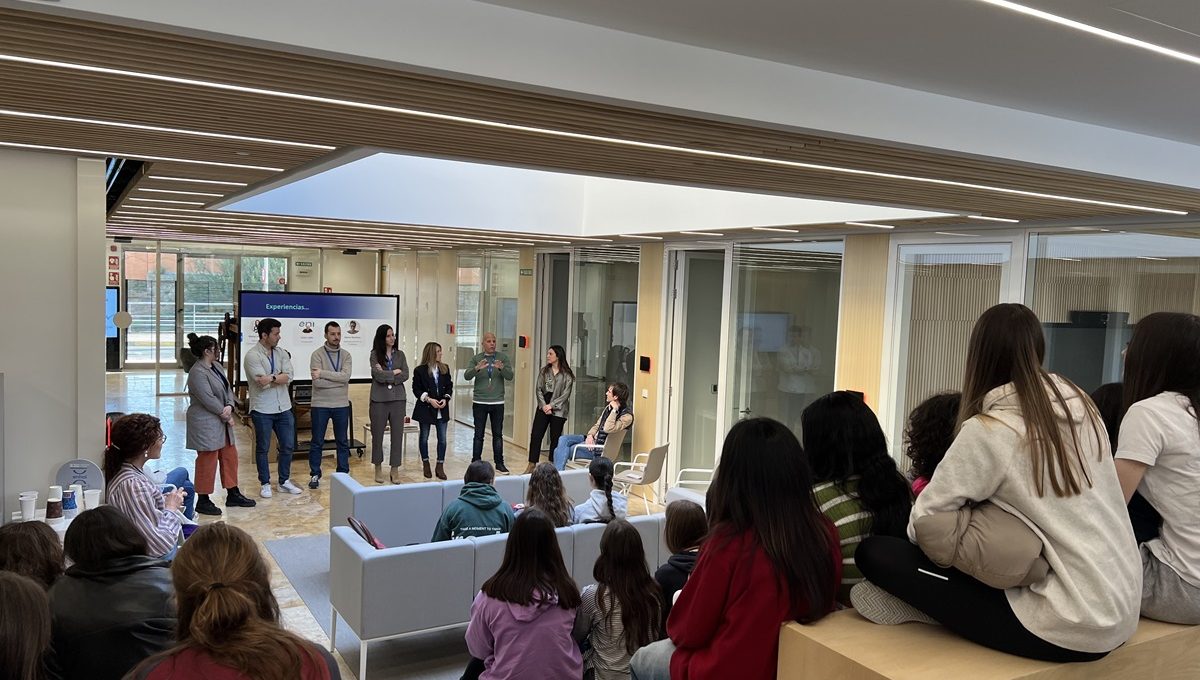 Los alumnos del Colegio Jesuitas de Tudela atienden las explicaciones de los representantes de Grupo Enhol. (Fotos: cedidas).