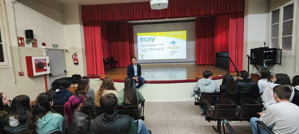 Un total de 49 alumnos de 4º de ESO y 1º de Bachillerato del FEC Vedruna Pamplona asistieron el 21 de febrero a la charla que Iñaki Ecay de Ecay Construcciones ofreció en dicho centro. Esta actividad forma parte de la quinta edición del programa «La Empresa Familiar en las Aulas«, promovida por ADEFAN y patrocinada por CaixaBank Dualiza.