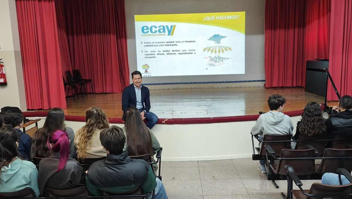 Un total de 49 alumnos de 4º de ESO y 1º de Bachillerato del FEC Vedruna Pamplona asistieron el 21 de febrero a la charla que Iñaki Ecay de Ecay Construcciones ofreció en dicho centro. Esta actividad forma parte de la quinta edición del programa «La Empresa Familiar en las Aulas«, promovida por ADEFAN y patrocinada por CaixaBank Dualiza.